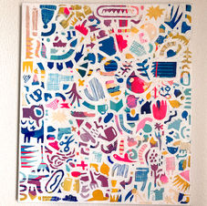 Hintergrund gemalt von meinem Kind, Illustration von mir. 30x30cm, Acryl auf Leinwand, 2024